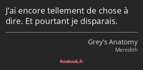 J’ai encore tellement de chose à dire. Et pourtant je disparais.