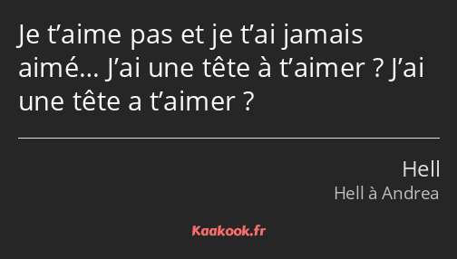 Je t’aime pas et je t’ai jamais aimé… J’ai une tête à t’aimer ? J’ai une tête a t’aimer ?