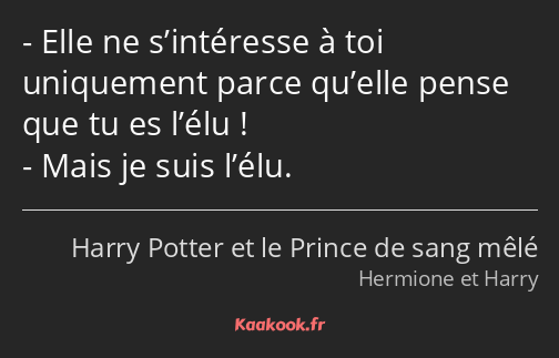 - Elle ne s’intéresse à toi uniquement parce qu’elle pense que tu es l’élu !