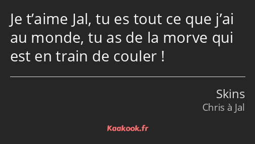 Je t’aime Jal, tu es tout ce que j’ai au monde, tu as de la morve qui est en train de couler !