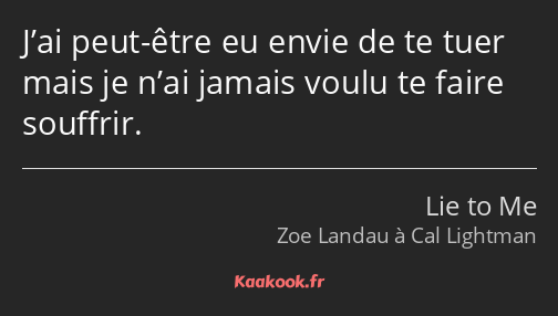 J’ai peut-être eu envie de te tuer mais je n’ai jamais voulu te faire souffrir.