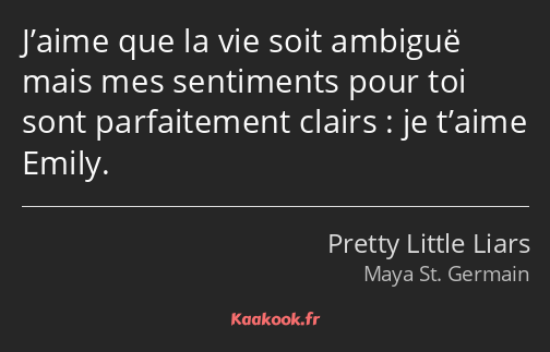 J’aime que la vie soit ambiguë mais mes sentiments pour toi sont parfaitement clairs : je t’aime Emily.
