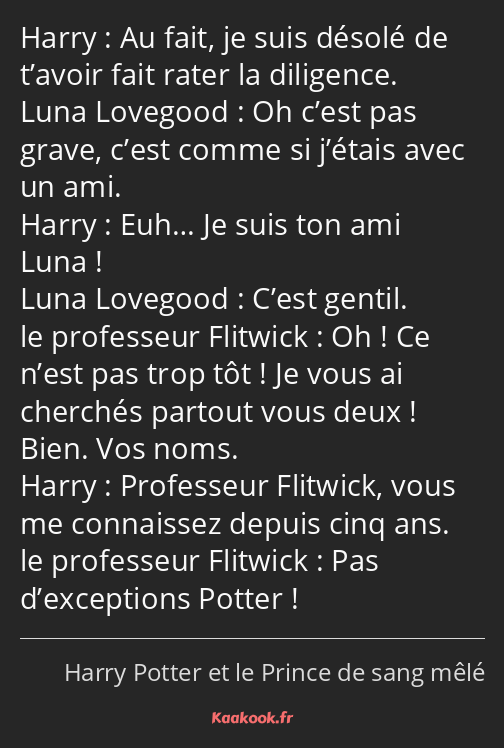 Harry : Au fait, je suis désolé de t’avoir fait rater la diligence.