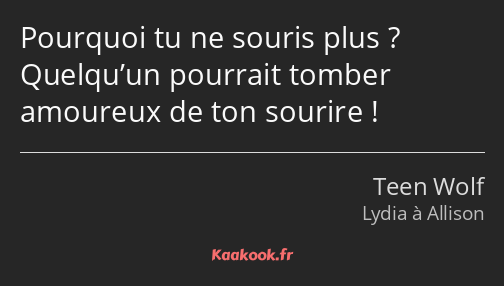 Pourquoi tu ne souris plus ? Quelqu’un pourrait tomber amoureux de ton sourire !