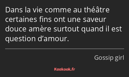 Dans la vie comme au théâtre certaines fins ont une saveur douce amère surtout quand il est question d’amour.