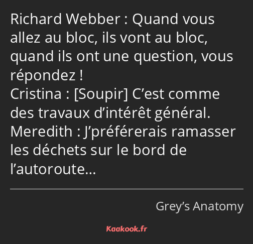 Richard Webber : Quand vous allez au bloc, ils vont au bloc, quand ils ont une question, vous répondez !