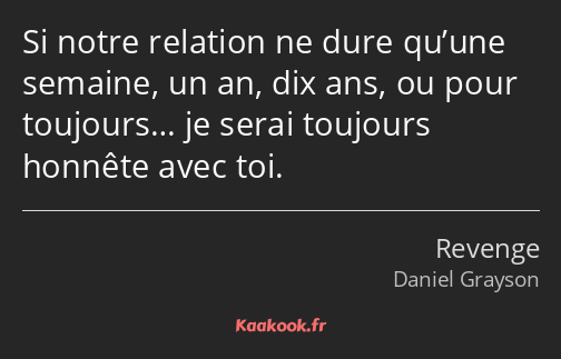 Si notre relation ne dure qu’une semaine, un an, dix ans, ou pour toujours… je serai toujours honnête avec toi.