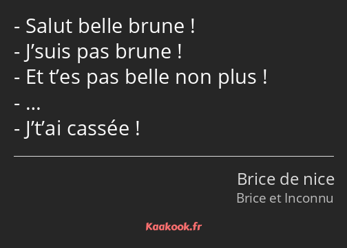 - Salut belle brune !