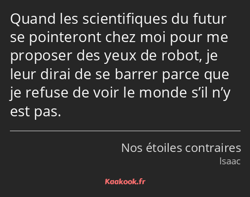 Quand les scientifiques du futur se pointeront chez moi pour me proposer des yeux de robot, je leur dirai de se barrer parce que je refuse de voir le monde s’il n’y est pas.
