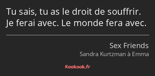 Tu sais, tu as le droit de souffrir. Je ferai avec. Le monde fera avec.