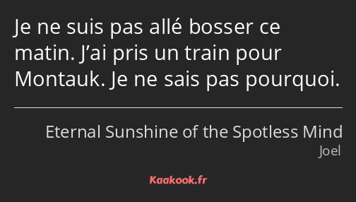 Je ne suis pas allé bosser ce matin. J’ai pris un train pour Montauk. Je ne sais pas pourquoi.