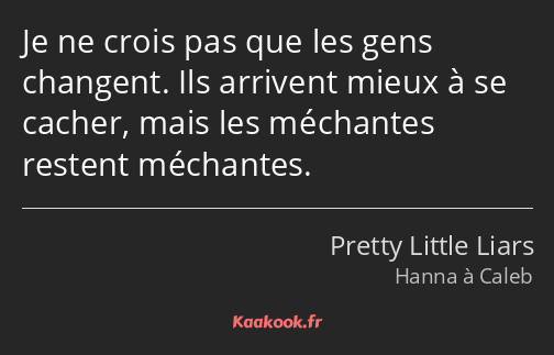 Je ne crois pas que les gens changent. Ils arrivent mieux à se cacher, mais les méchantes restent méchantes.