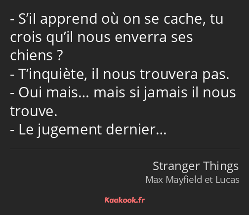 - S’il apprend où on se cache, tu crois qu’il nous enverra ses chiens ?