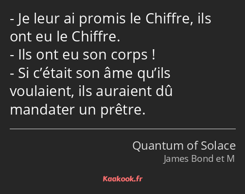- Si c’était son âme qu’ils voulaient, ils auraient dû mandater un prêtre.