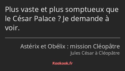 Plus vaste et plus somptueux que le César Palace ? Je demande à voir.