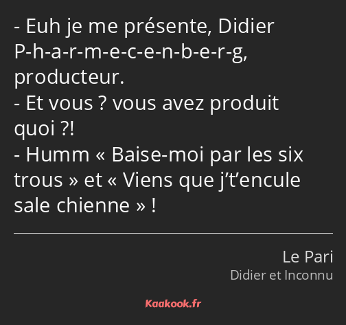 - Euh je me présente, Didier P-h-a-r-m-e-c-e-n-b-e-r-g, producteur.