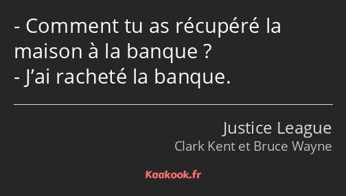 - Comment tu as récupéré la maison à la banque ?