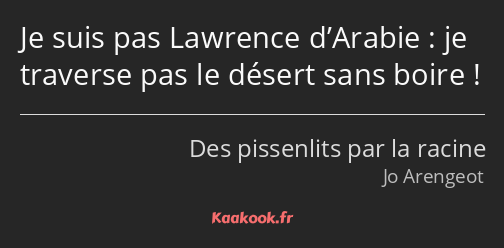 Je suis pas Lawrence d’Arabie : je traverse pas le désert sans boire !