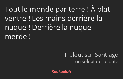 Tout le monde par terre ! À plat ventre ! Les mains derrière la nuque ! Derrière la nuque, merde !