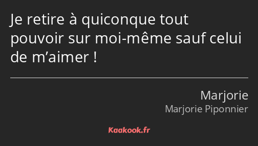 Je retire à quiconque tout pouvoir sur moi-même sauf celui de m’aimer !