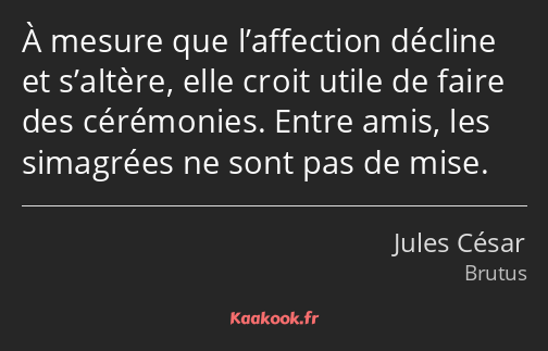 À mesure que l’affection décline et s’altère, elle croit utile de faire des cérémonies. Entre amis, les simagrées ne sont pas de mise.