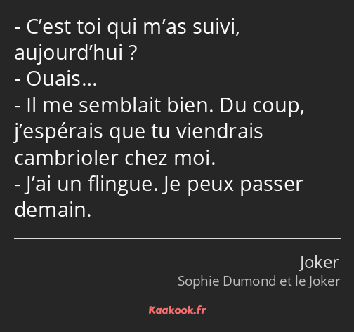 - C’est toi qui m’as suivi, aujourd’hui ?