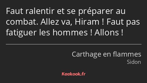 Faut ralentir et se préparer au combat. Allez va, Hiram ! Faut pas fatiguer les hommes ! Allons !
