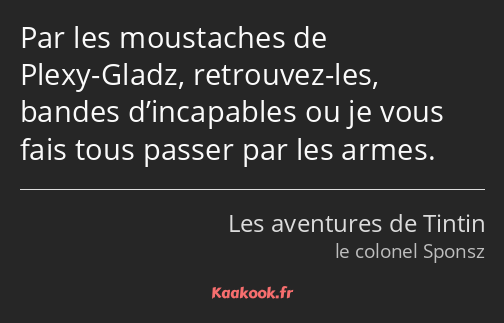 Par les moustaches de Plexy-Gladz, retrouvez-les, bandes d’incapables ou je vous fais tous passer par les armes.