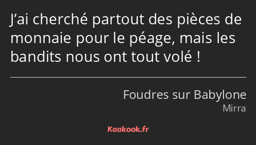 J’ai cherché partout des pièces de monnaie pour le péage, mais les bandits nous ont tout volé !