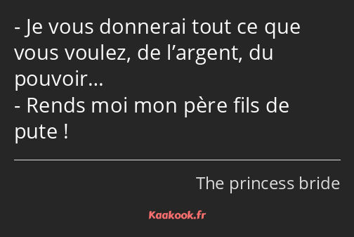 - Je vous donnerai tout ce que vous voulez, de l’argent, du pouvoir…