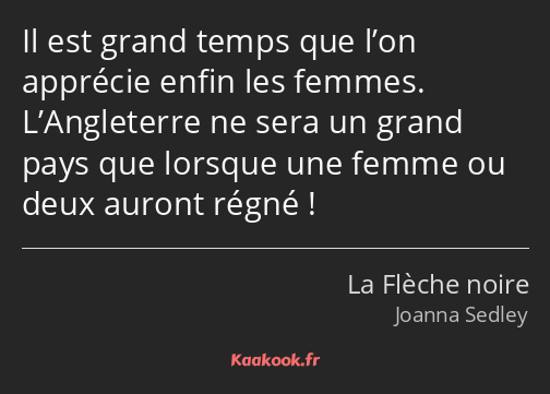 Il est grand temps que l’on apprécie enfin les femmes. L’Angleterre ne sera un grand pays que lorsque une femme ou deux auront régné !
