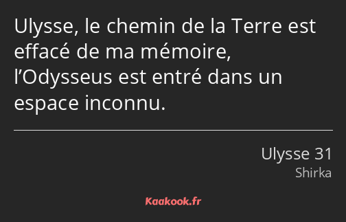Ulysse, le chemin de la Terre est effacé de ma mémoire, l’Odysseus est entré dans un espace inconnu.