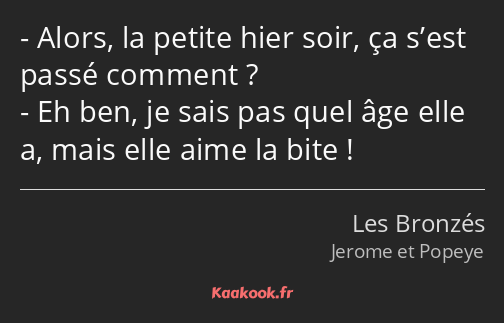 - Alors, la petite hier soir, ça s’est passé comment ?