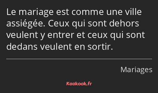 Le mariage est comme une ville assiégée. Ceux qui sont dehors veulent y entrer et ceux qui sont dedans veulent en sortir.