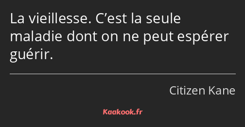 La vieillesse. C’est la seule maladie dont on ne peut espérer guérir.