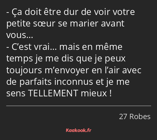 - Ça doit être dur de voir votre petite sœur se marier avant vous…