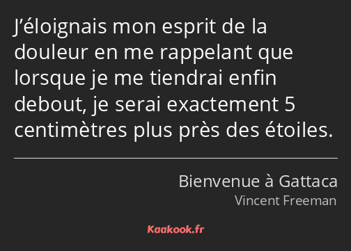 J’éloignais mon esprit de la douleur en me rappelant que lorsque je me tiendrai enfin debout, je serai exactement 5 centimètres plus près des étoiles.