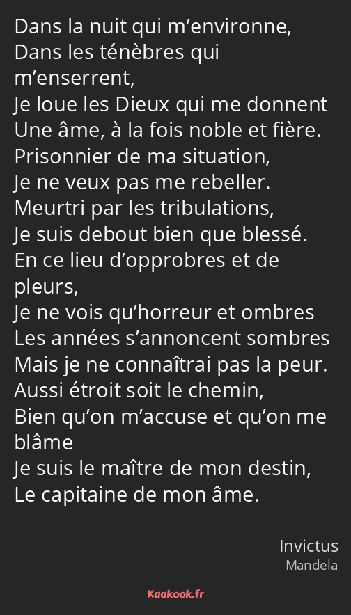 Je suis le maître de mon destin,