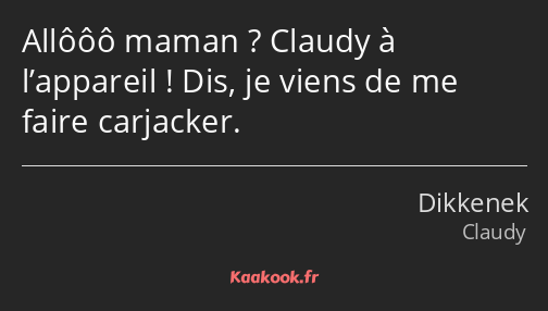 Allôôô maman ? Claudy à l’appareil ! Dis, je viens de me faire carjacker.