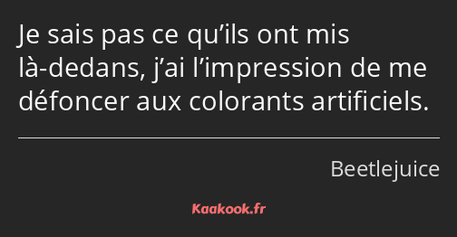 Je sais pas ce qu’ils ont mis là-dedans, j’ai l’impression de me défoncer aux colorants artificiels.