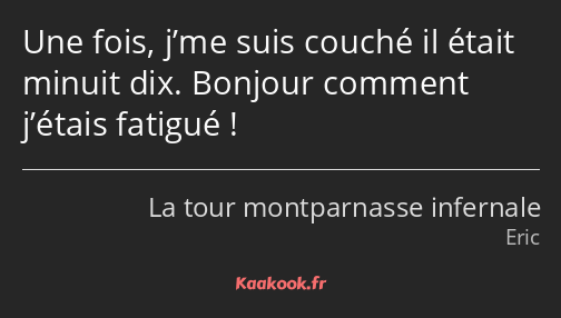 Une fois, j’me suis couché il était minuit dix. Bonjour comment j’étais fatigué !