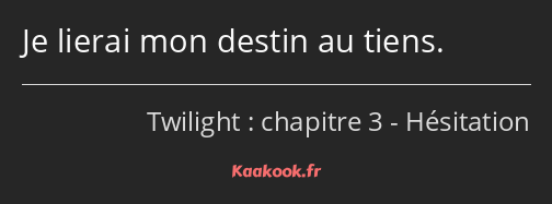 Je lierai mon destin au tiens.