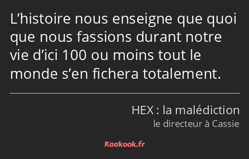 L’histoire nous enseigne que quoi que nous fassions durant notre vie d’ici 100 ou moins tout le monde s’en fichera totalement.