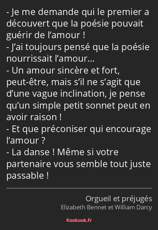 - Je me demande qui le premier a découvert que la poésie pouvait guérir de l’amour !